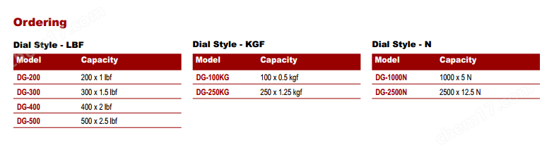 Chatillon DG-500機械測力計該機械測力計精度為全量程 ±0.5%,可作為手持裝置,或裝配選配的手柄套裝以供雙手操作。若配合 MT500 係列機械測試台使用,DG 係列可提供一個高達 500 磅力(千牛)的多功能經濟測試係統。DG 係列主要特色:- 三種分度單位(磅力、千克力和牛)- 真正安全- 峰值開關