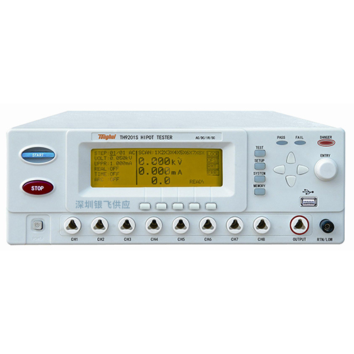 ■ TH9201S八路掃描交直流耐壓絕緣測試儀是一種為客戶精巧設計的電氣安規測試儀器。精簡和緊湊的結構、成熟的技術。全新的結構和操作界麵使操作和使用都更簡便。包含更多實用的功能。TH9201產品可廣泛應用於變壓器、設備、元器件特別是繞線元件的安全檢查。TH9201S八路掃描交直流耐壓絕緣測試儀